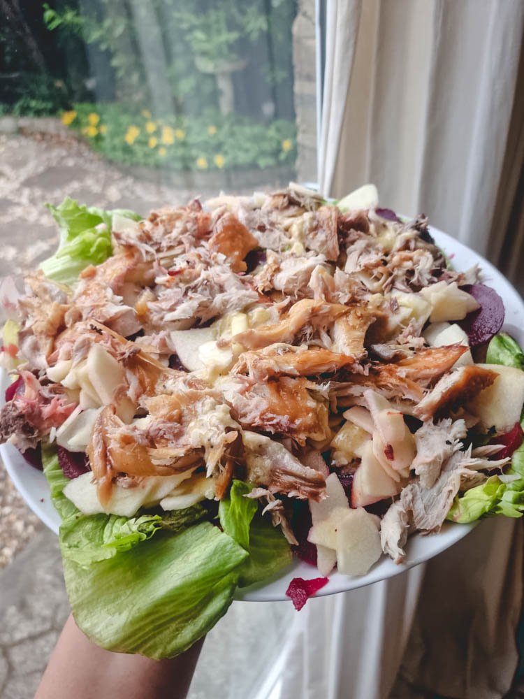 After a generous squeeze of lemon, we slip pieces of the hand-carved salmon on to thin slices of sourdough toast, marveling at the simplicity and the yumminess of it all